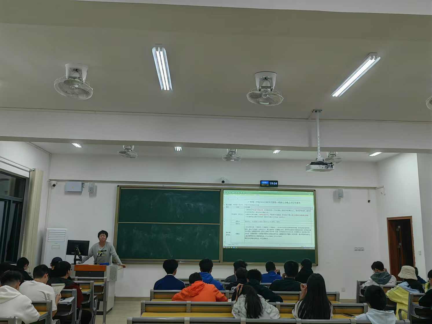 11月24日晚,智能制造与电气工程学院全体2024级同学在惠州校区教学楼召开2024年秋季学期第13周班会,班会由各班辅导员老师主持,团支书兼班长主讲。