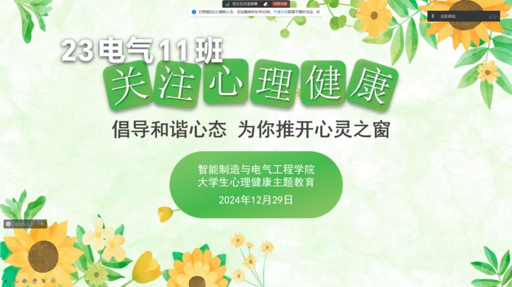 为提升学生心理健康水平,强化应对成长压力的承受能力,12月29日晚上,122cc太阳集成游戏于线上召开“倡导和谐心态,为你推开心灵之窗”主题班会,各班班长和辅导员主持会议,全体学生参与。