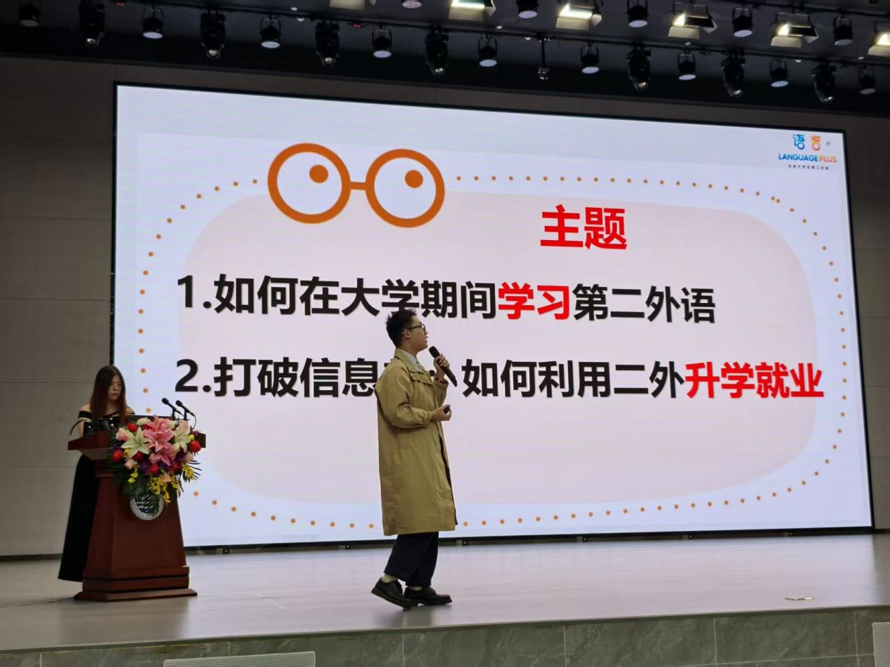 为帮助学子明确第二外语学习方向、提升升学就业竞争力、营造积极向上的学习氛围,10月30日下午,智能制造与电气工程学院在惠州校区大礼堂开展“第二外语学习规划”公益讲座。本次讲座特邀资深语言培训专家辣椒老师担任主讲人,面对众多有二外学习需求的学子展开说明。希望助力大家解锁语言学习与个人发展的关联。