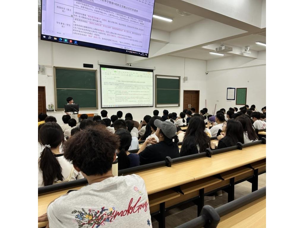 进入课堂秩序规范详解环节,各班班长纷纷聚焦《课堂教学状态线上监测实施办法》,向新生细致解读学院引入的智能监测系统功能——该系统将实时监测学生出勤、课堂抬头率、笔记记录及手机使用情况,既是对学习过程的监督,也是对学习效果的保障。同时,班长们明确划定课堂行为 “红线”:严禁后排聚集就座,禁止睡觉、聊天等扰乱课堂秩序的行为;迟到或早退超过 15 分钟将按旷课处理,累计 3 次旷课计 1 学时旷课记录,且该记录会直接影响学业成绩与评优资格;合班上课时,需严格按班级分区就座,并遵循 “前排优先” 原则,鼓励新生主动争取优质学习位置。辅导员们在台下认真聆听,对班长讲解中涉及的纪律要点,会通过眼神示意或轻微点头予以强调。