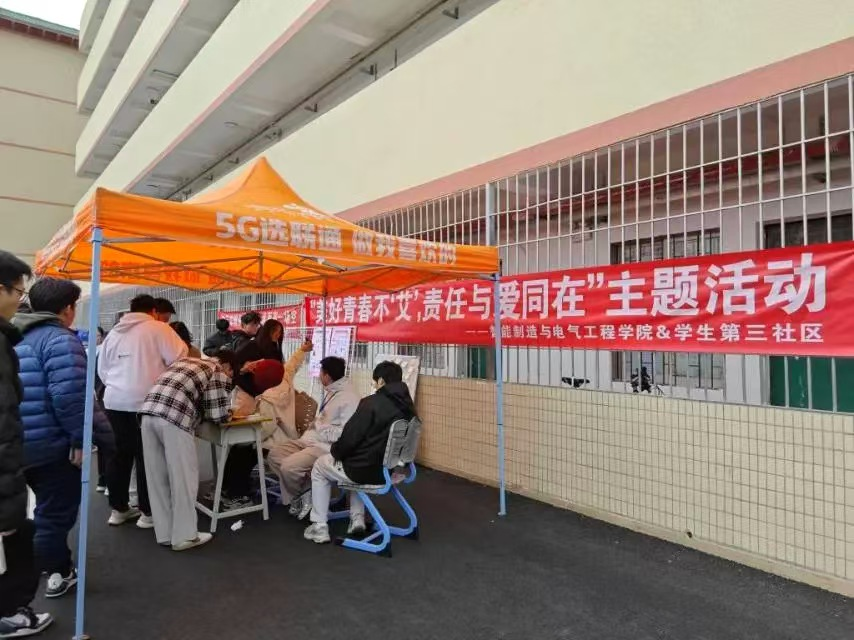 青春正好,健康为基。为增强学生防艾意识、筑牢校园健康防线,11月19日,智能制造与电气工程学院联合学生第三社区,在学生11栋宿舍楼下开展了以“美好青春不‘艾’,责任与爱同在”为主题的防艾科普宣传活动,吸引了众多同学积极参与。