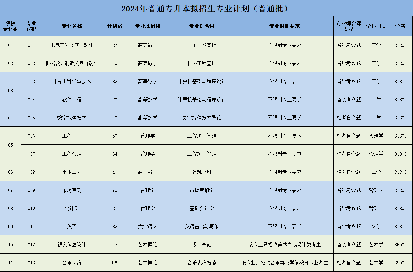 122cc太阳集成游戏2024年普通专升本招生专业计划