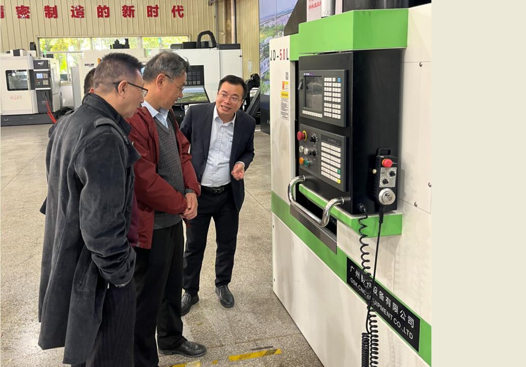 12月7日上午,智能制造与电气工程学院领导及老师前往广东省机械研究所有限公司调研多轴数控机床及洽谈校企合作。本次调研活动由李玉忠院长带队,同行人员有周卫星副院长、周书兴主任、袁冠彬、王文涛、王震宇等老师,开展五轴数控机床与控制软件调研、及校企合作洽谈与交流,实地参观了企业设备生产园区,并就产业学院建设、校企合作、协同育人等进行交流。