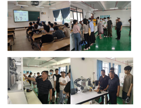 还参观了广东省工业机器人集成与应用工程技术研究中心,详细介绍了各种机器人、机器人工作站、机器人综合实验台、离线编程软件等实验设备。会后与同学进行了交流,了解到他们大部分同学都有工作的经历,继续学习不仅仅是理论和实践的的结合,更主要的拓宽了知识面和深度,进一步指导实践。其中有几位同学打算考取研究生,继续深造。