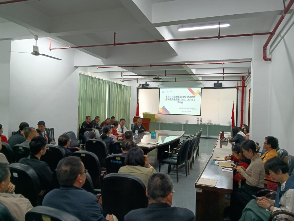 3月2日,为进一步落实学校有关工作要求, 智能制造与电气工程学院召开集体学习研讨会,征求《构建新发展格局 促进高质量发展实施纲要(2023-2026)》修改意见。学院全体教职工参加研讨会,院长李玉忠主持。