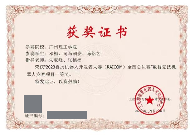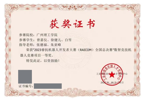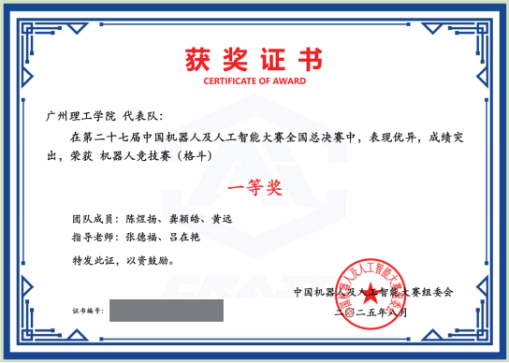 第二十七届中国机器人及人工智能大赛全国总决赛机器人竞技赛国家级一等奖