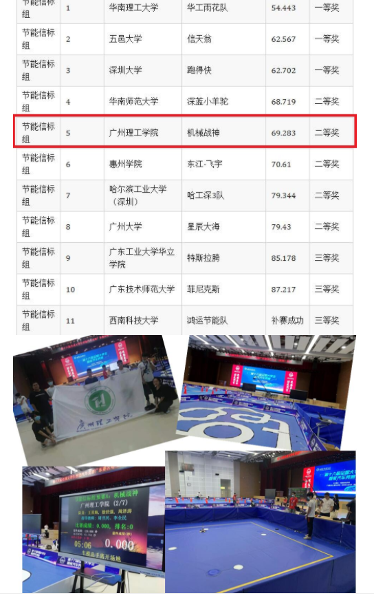 7月21日至23日,由教育部高等教高司高等学校自动化类教学指导委员会举办的旨在加强学生实践、创新能力和培养团队精神的第十六届全国大学生智能车竞赛,华南赛区广东分赛区在哈尔滨工业大学深圳校区举办,机电工程学院“机械战神”团队在“节能信标组”赛项比赛中获得第五名二等奖。
