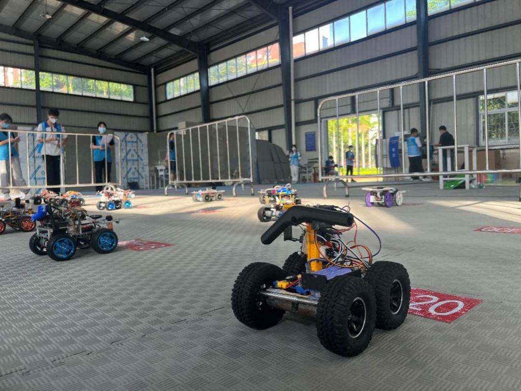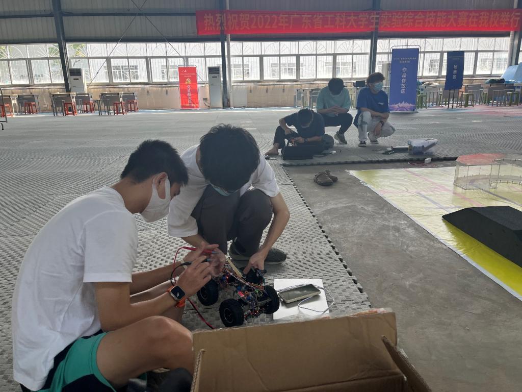 广东省工科大学生实验综合技能竞赛分为全地形越障排爆小车竞赛、智能终端配送机器人竞赛和3D设计与制作竞赛等三个赛道比赛项目严格按照疫情防控要求,分别在岭南师范学院的主赛场和三个分赛场同时进行。