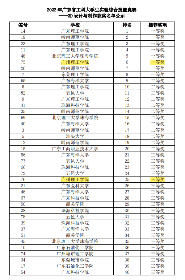 3D打印赛获奖名单公示