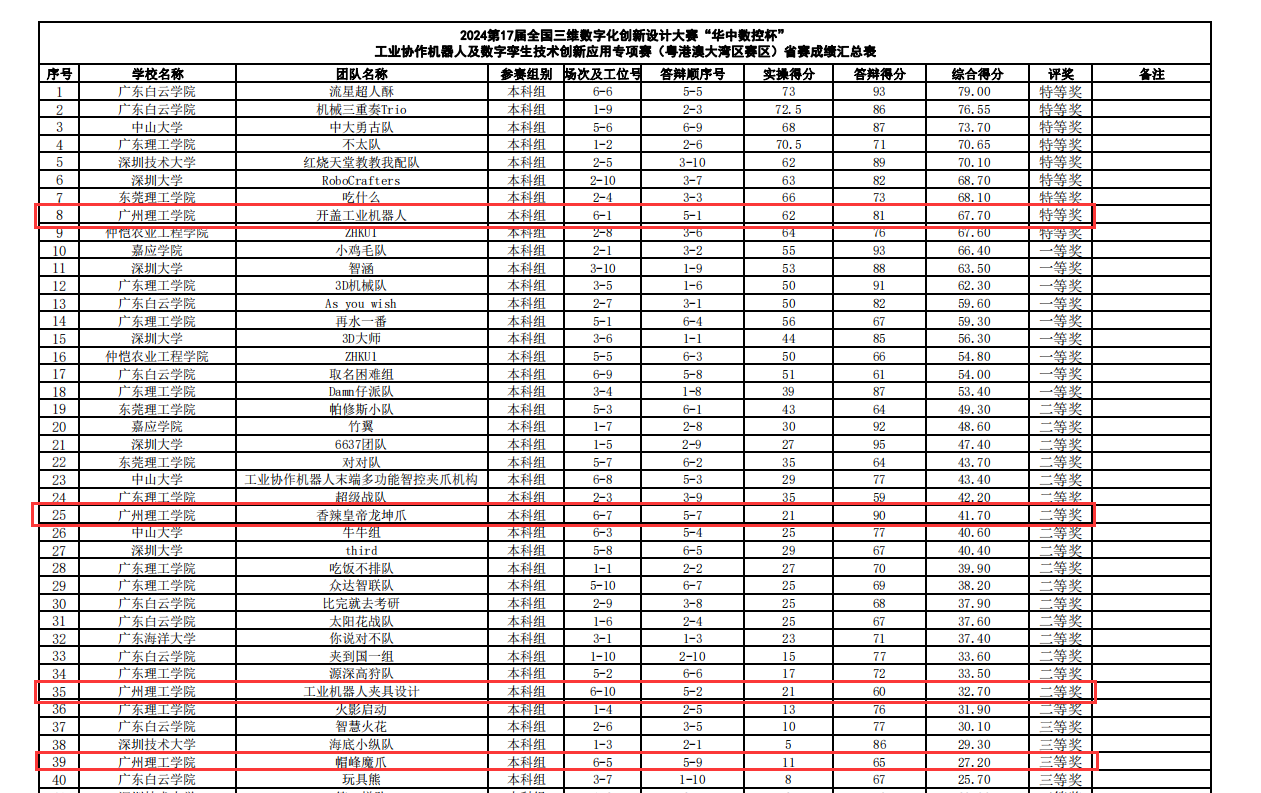 7月14日,在广州白云学院举行的第十七届全国三维数字化创新设计大赛“华中数控杯”工业协助机器人及数字孪生技术创新应用专项赛(粤港澳赛区)正式落下帷幕,122cc太阳集成游戏4个参赛队伍共斩获特等奖1项、二等奖2项、三等奖1项。这是我院参加该项赛事以来取得的重大突破!