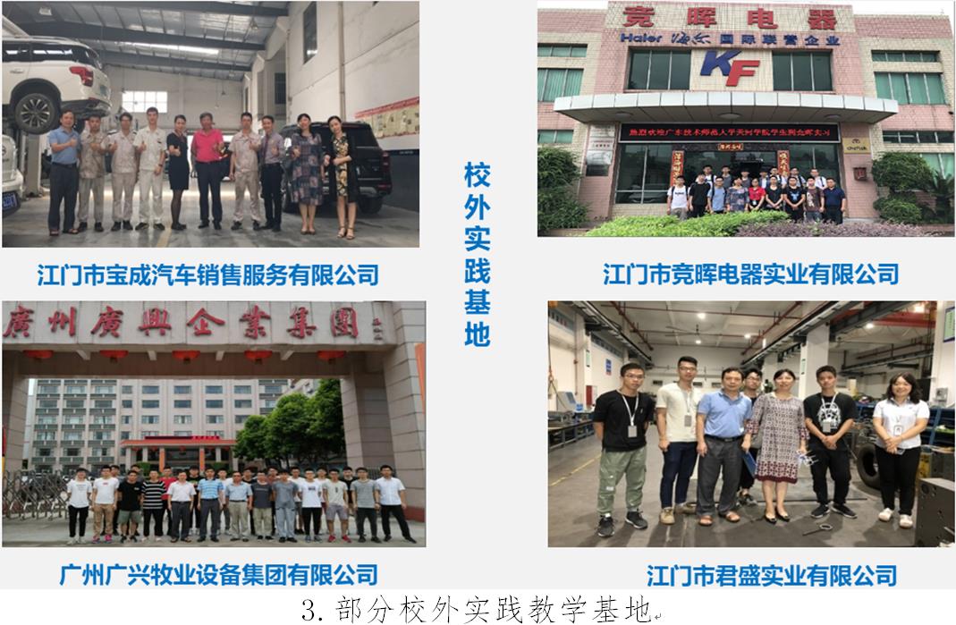 智能制造与电气工程学院现有16个校内外实践教学基地,都有产学研合作,特别是接收学生开展专业认知实习、专业实习、毕业实习,基本能满足本学院学生的校外实践教学,有些专业学生通过毕业实习,直接留在实习单位就业工作。其中有广州数控设备有限公司、深圳比亚迪股份有限公司、东莞台铃车业有限公司、汉威泰(广州)电器制造有限公司、广州广兴牧业设备集团有限公司等。同时,也还在不断扩展新工科相关企业的校企合作,解决粤港澳大湾区对新工科人才培养需求。