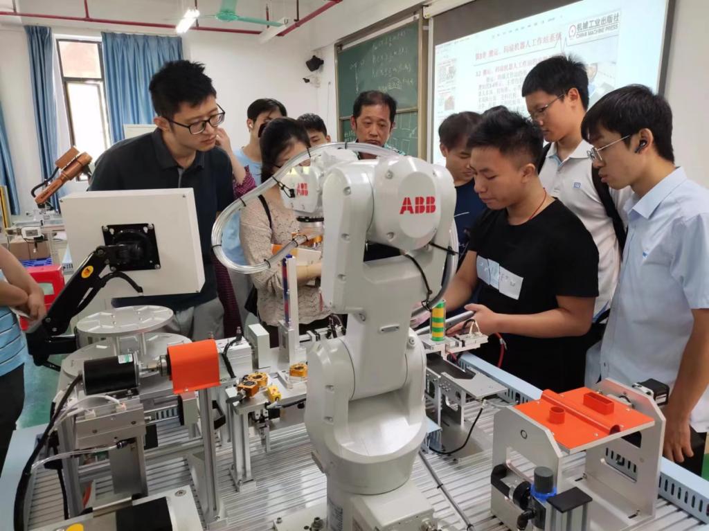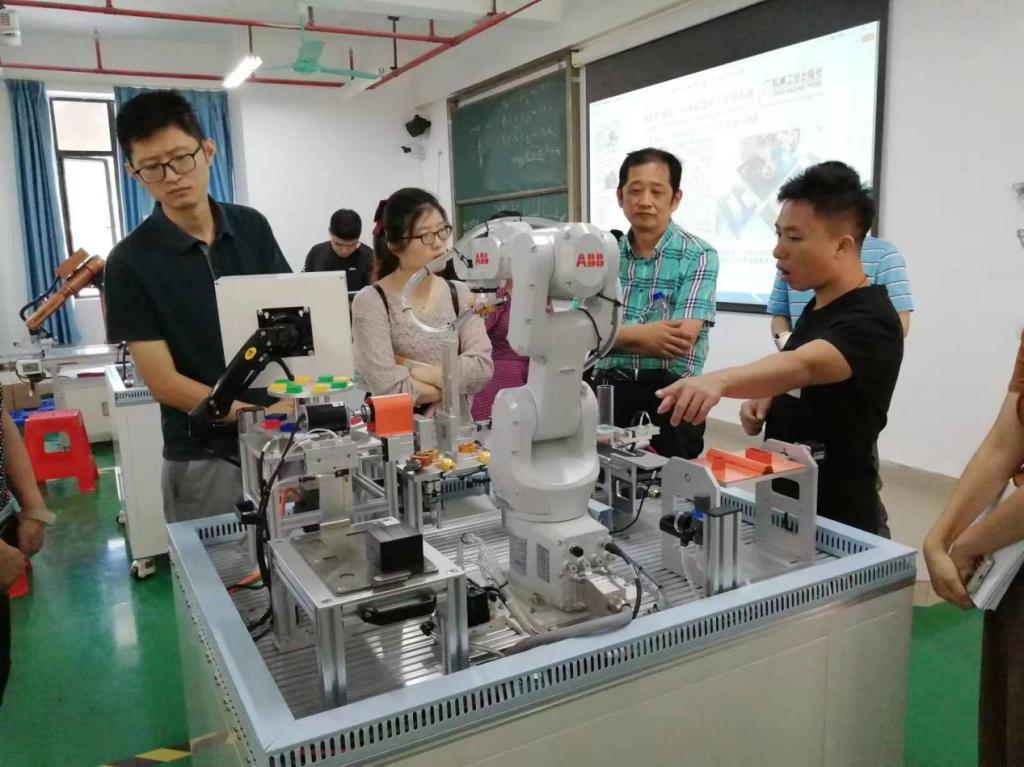 为了提升我校本科教学水平并完善实验设备,智能制造与电气工程学院购置了4台ABB机器人综合实训平台。为了使学院教师熟悉并掌握ABB机器人的操作和使用,学院于10月17日至19日在13栋教学楼201机器人应用实验室进行了为期3天的技术培训。
