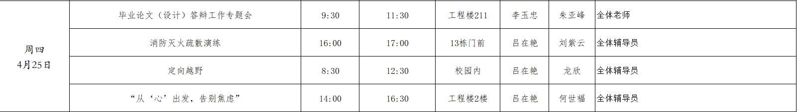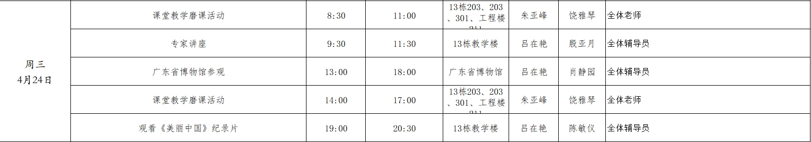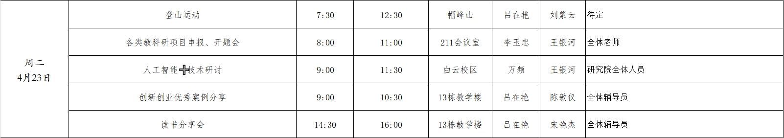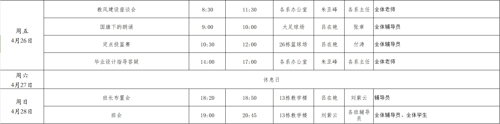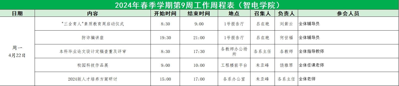 2024年春季学期第9周工作周程表