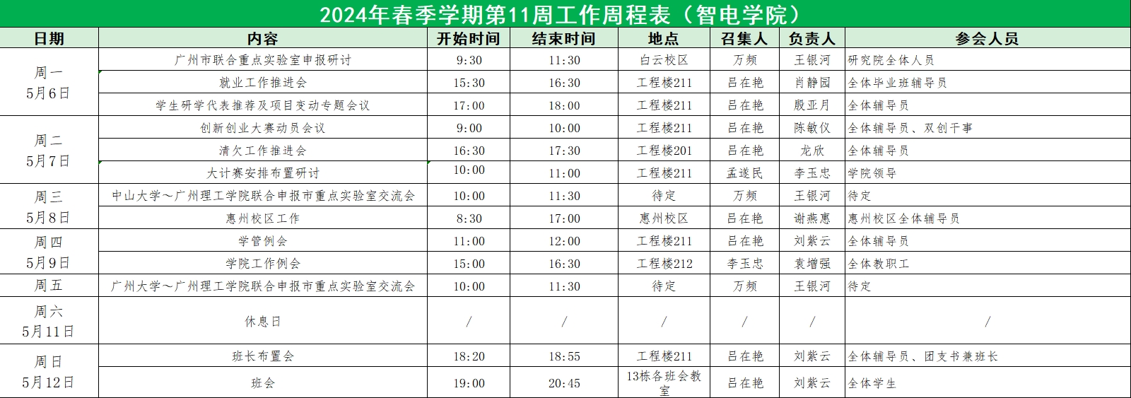 2024年春季学期第11周工作周程表