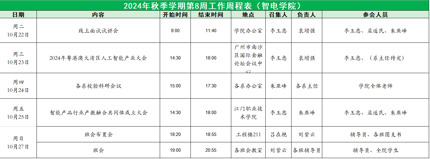 2024年秋季学期第8周工作周程表