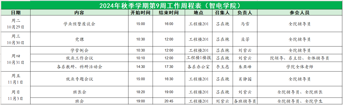 2024年秋季学期第9周工作周程表