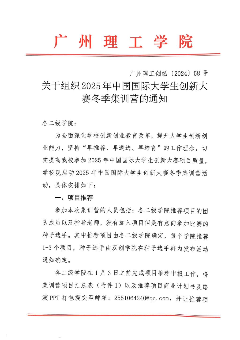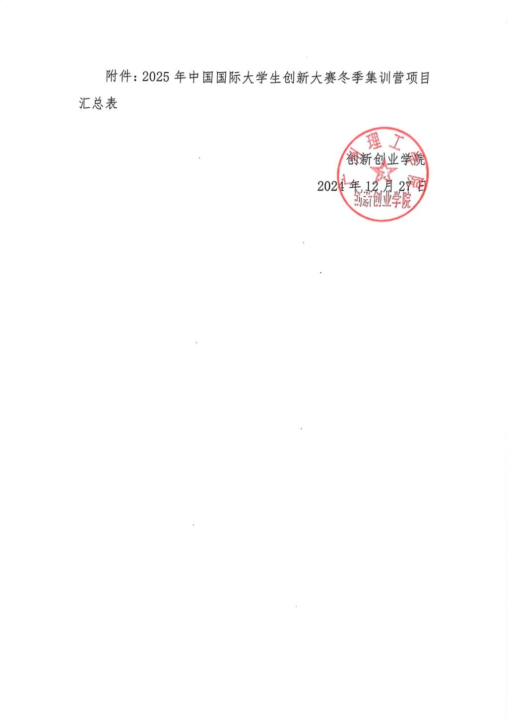 关于组织2025年中国国际大学生创新大赛冬季集训营的通知