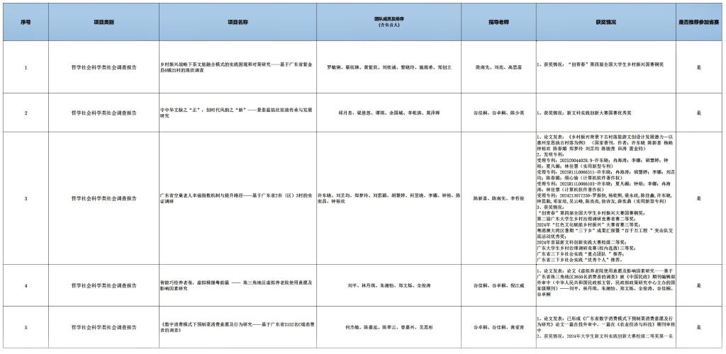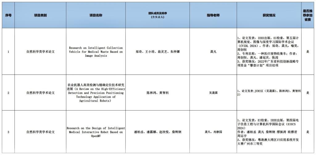 经过激烈角逐与严格评审,2025年广东大学生课外学术科技作品竞赛校赛决赛阶段已圆满落幕。众多优秀作品脱颖而出,彰显了我校学子出色的创新精神与实践能力。现将本次广东大学生课外学术科技作品竞赛校赛决赛的获奖名单予以公示。