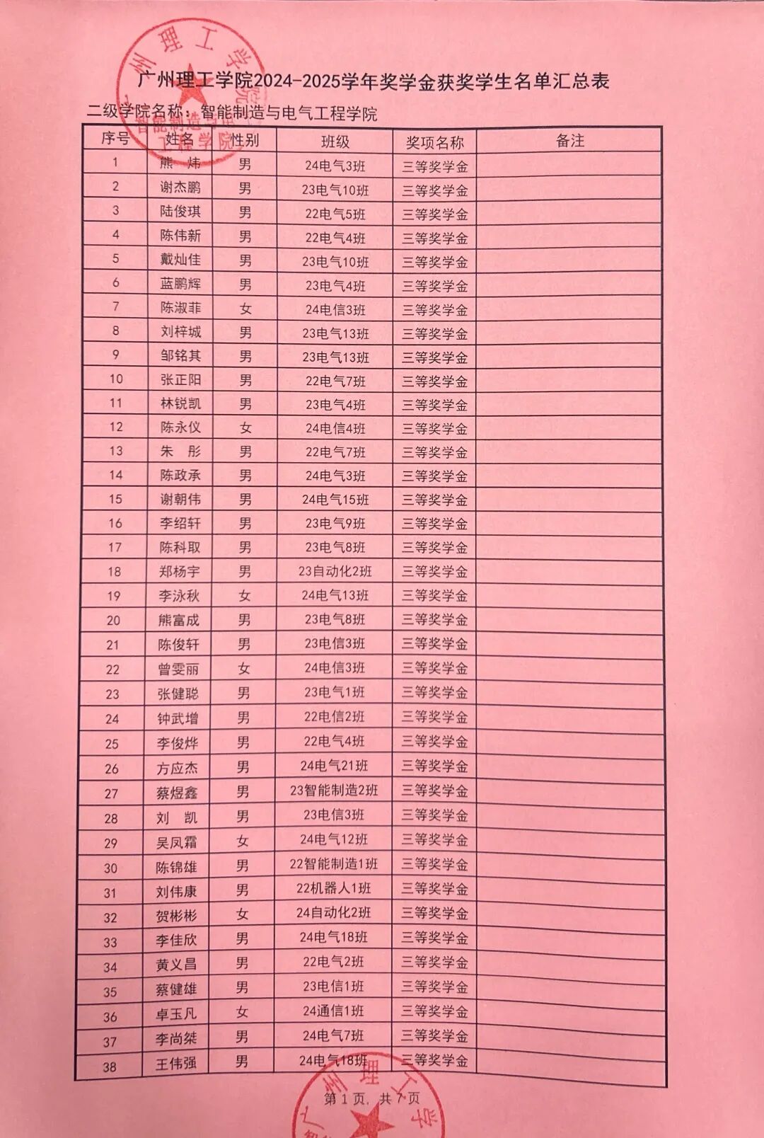 八、2024-2025学年奖学金最终名单以校级公示名单为准。