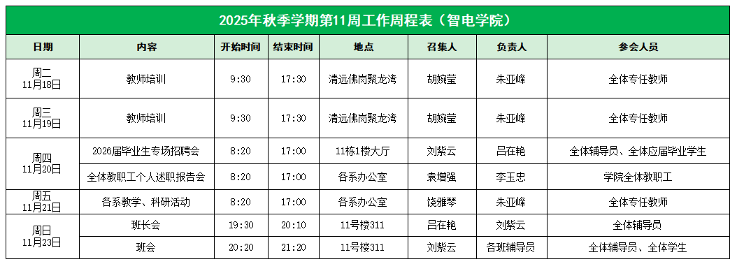 122cc太阳集成游戏2025年秋季学期第11周工作周程表