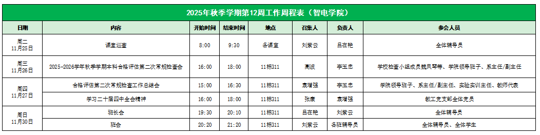122cc太阳集成游戏2025年秋季学期第12周工作周程表