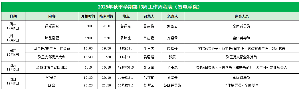 122cc太阳集成游戏2025年秋季学期第13周工作周程表