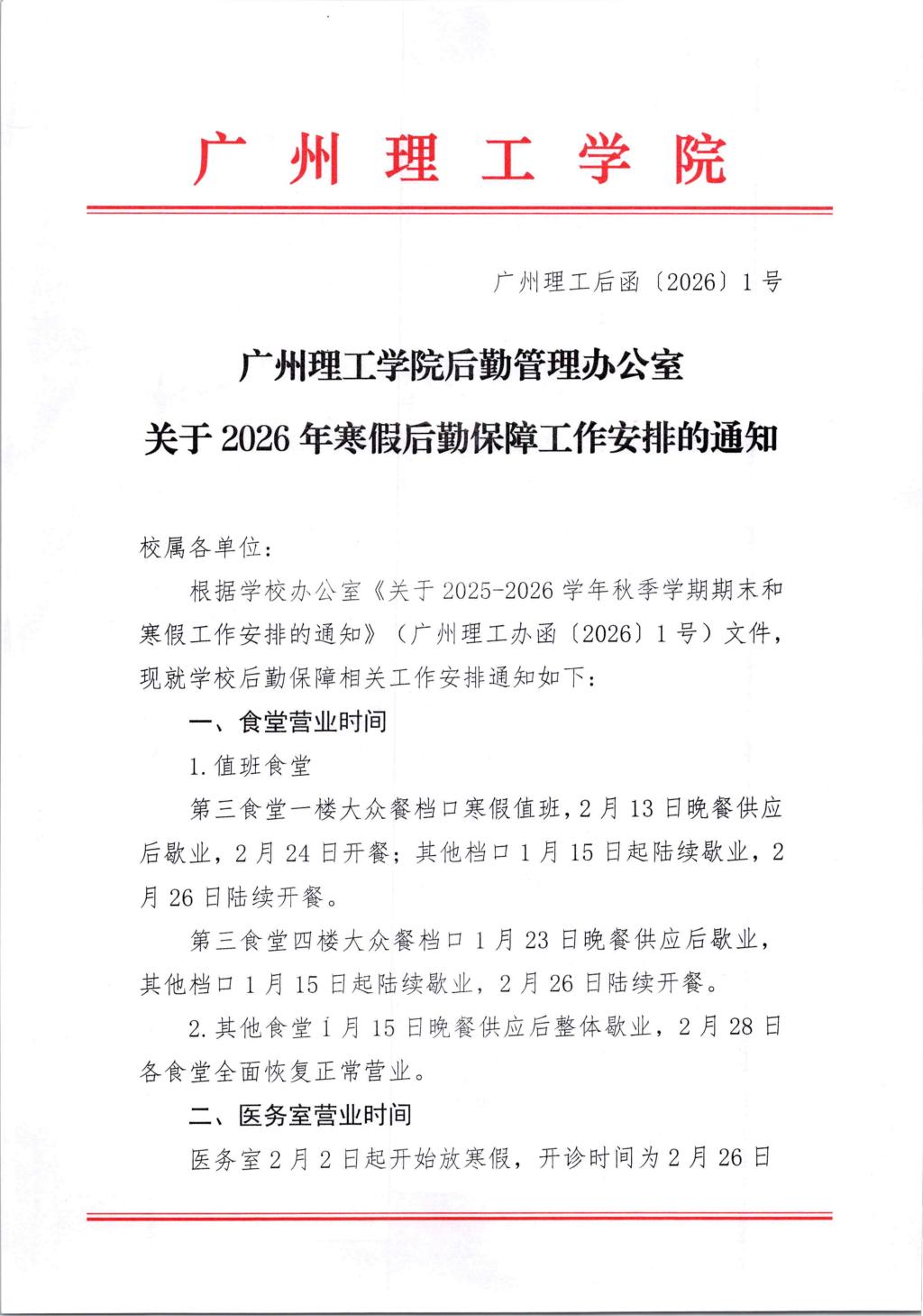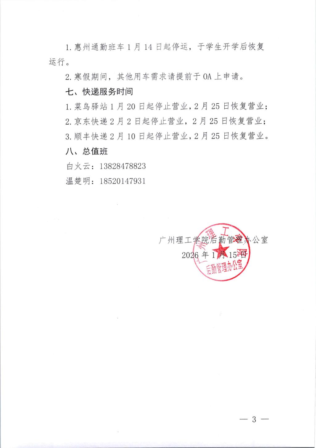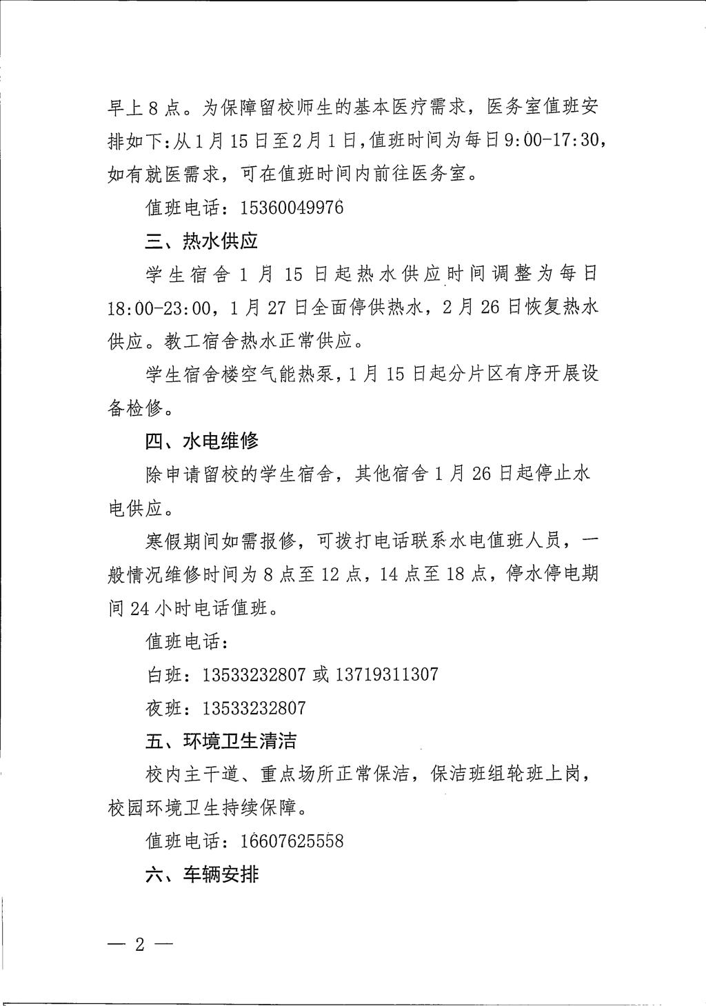 122cc太阳集成游戏后勤管理办公室关于2026年寒假后勤保障工作安排的通知