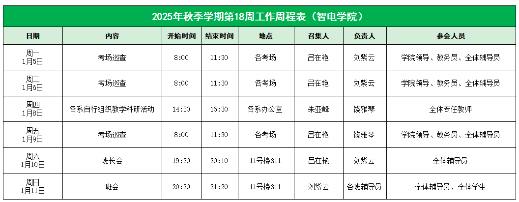 122cc太阳集成游戏2025年秋季学期第18周工作周程表