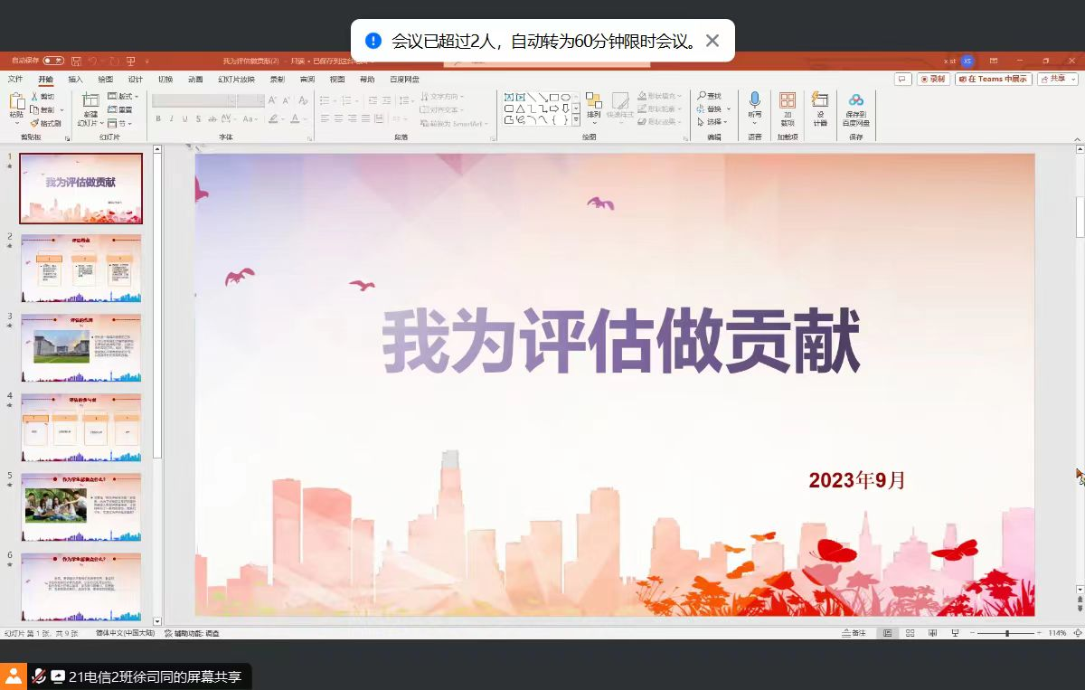 122cc太阳集成游戏于9月24日晚在线上召开了以“我为评估做贡献”为主题的班会。辅导员主持了班会,全体同学参会。