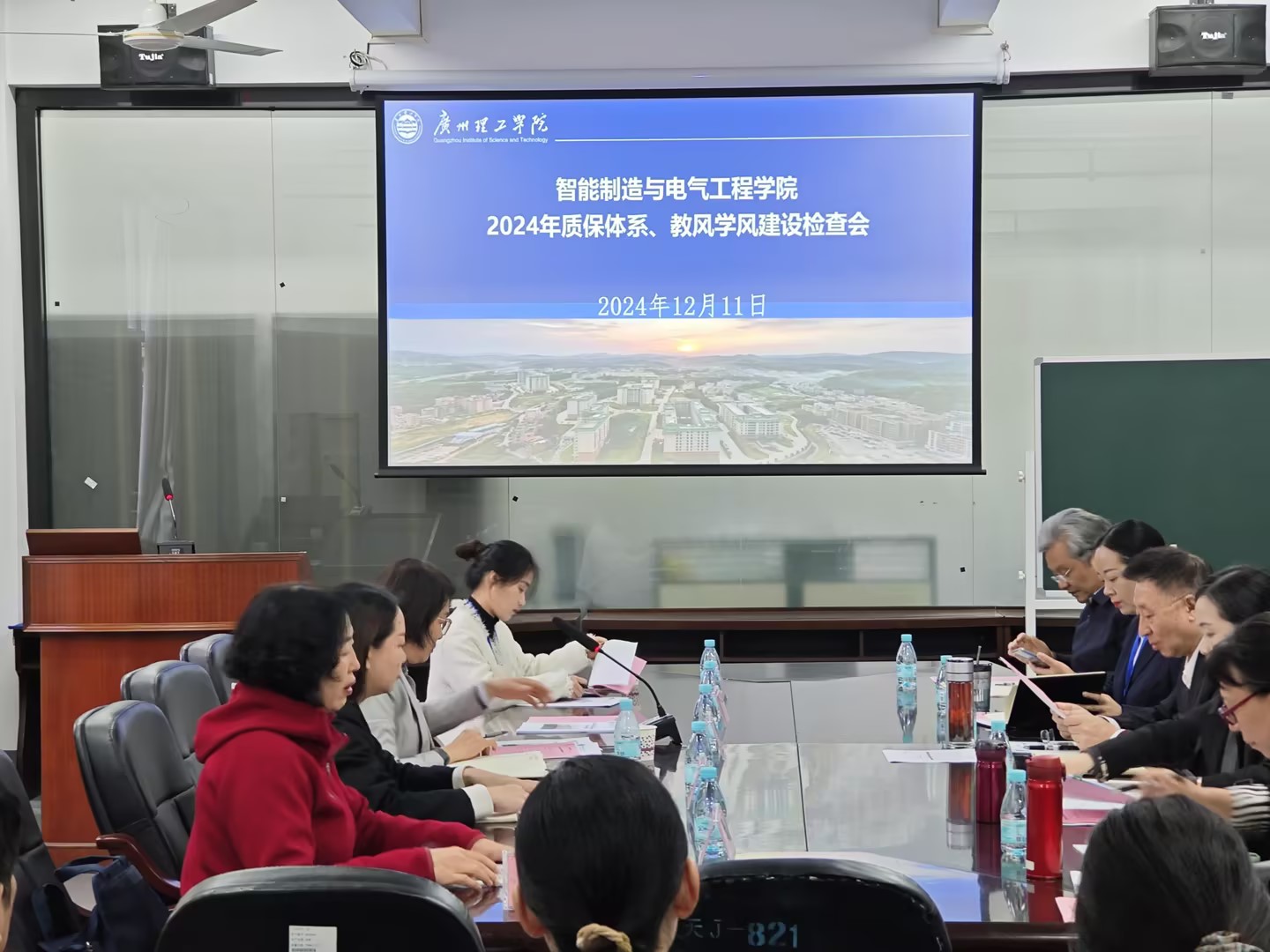 12月11日上午,智能制造与电气工程学院迎接2024年质评体系、教风学风建设成效检查,学校检查工作组由教学管理部部长王益玲带队,成员有人事处副处长吴恩、教务处副处长袁洁贞、质评中心副主任王宇、团委副书记席宇欣、质评中心李美颖老师。会议由李玉忠院长主持,学院参会人员有党总支副书记吕在艳、教学副院长朱亚峰、实践教学副院长孟遂民、系主任、副系主任、办公室主任、评估专员、教师代表、辅导员代表、教务干事等。