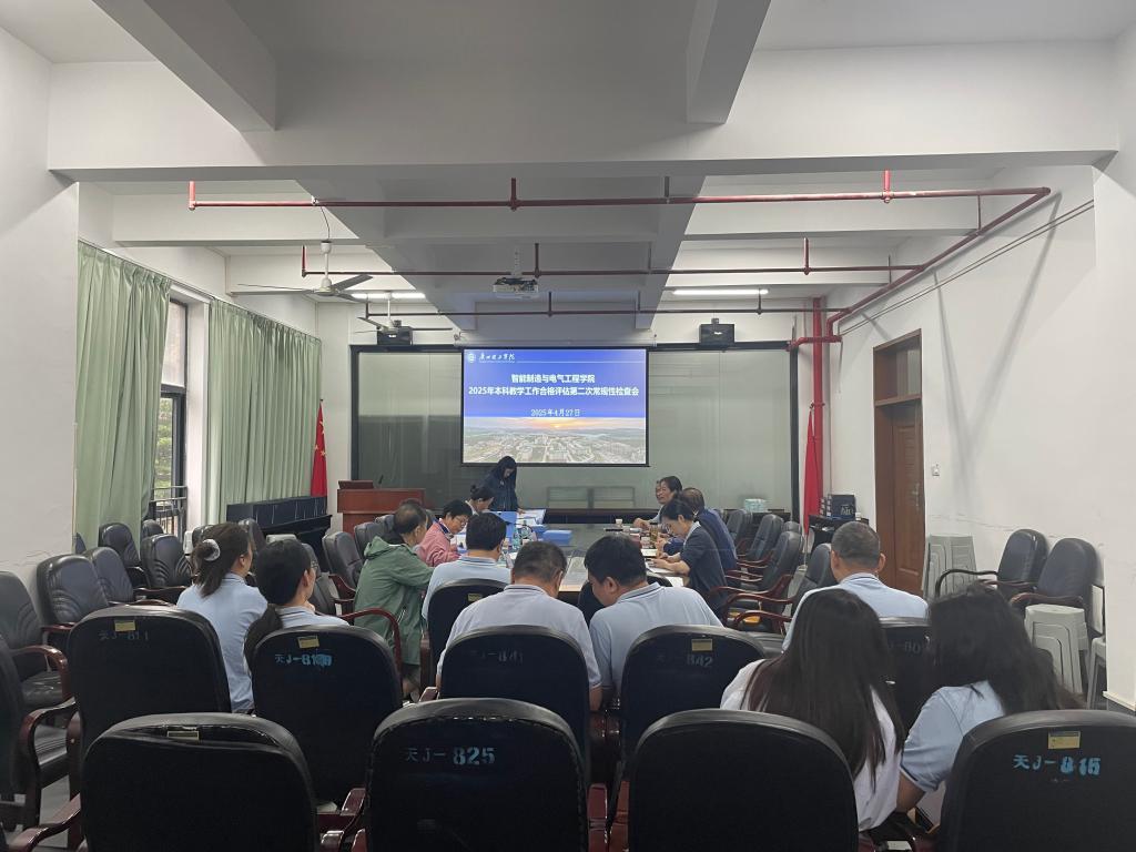 4月27日下午,智能制造与电气工程学院迎接2025年本科教学工作合格评估第二次常规检查。学校检查工作组由张世梅副校长带队,成员有教务处副处长库夭梅、质评中心副主任黄亚兰、质评中心李美颖老师。会议由李玉忠院长主持,学院参会人员有学院党总支副书记吕在艳,副院长朱亚峰、副院长孟遂民、副院长唐志列、系主任、系副主任、评估专员、学工教师等。