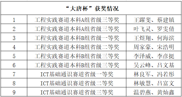 以赛促学、以赛促教、以赛促创——122cc太阳集成游戏在第十二届“大唐杯”竞赛中荣获多项奖项!