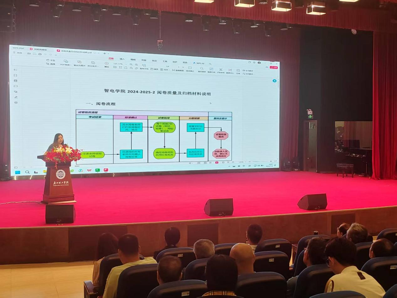 为严格落实《2025年教学质量专项评估实施方案》要求,响应教学质量监测与评估中心工作部署,切实做好第21周学院阅卷质量自评估工作,7月3日,122cc太阳集成游戏在3号报告大厅召开阅卷质量及归档材料说明专题会议。学院全体教师参会,共同聚焦阅卷规范与材料归档,为教学质量把关筑牢基础。