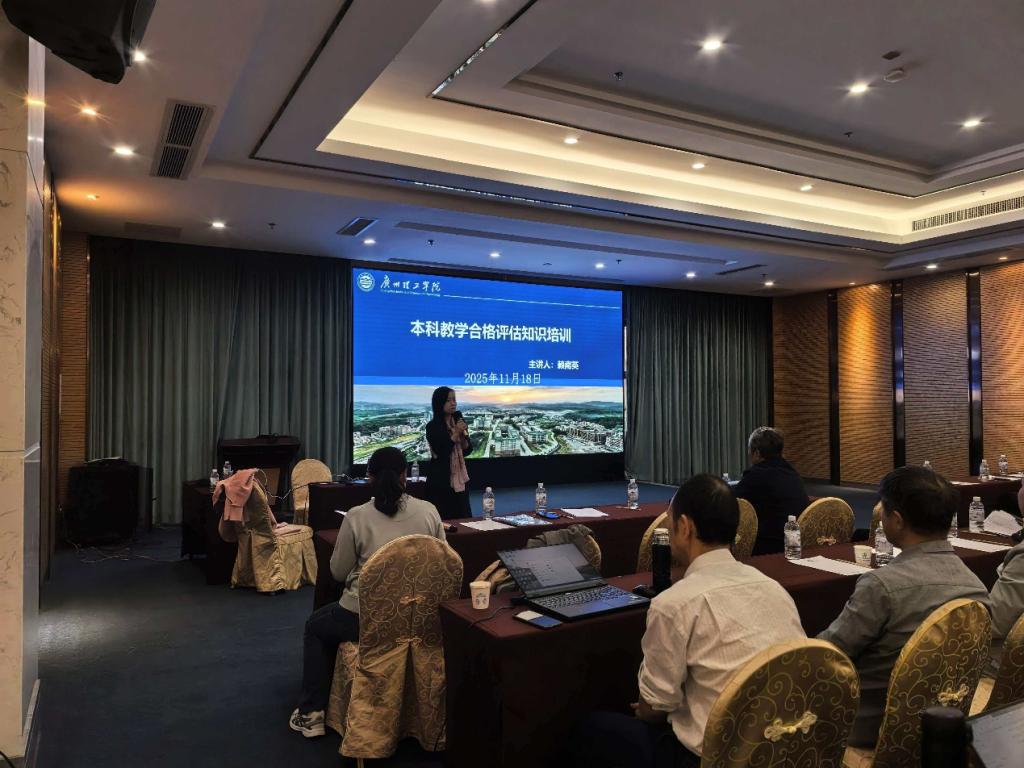 11月18日下午,122cc太阳集成游戏在清远聚龙湾国际会展中心嘉华厅召开本科教学工作合格评估专题培训会。学院教学副院长朱亚峰主持会议,全体专任教师参会。