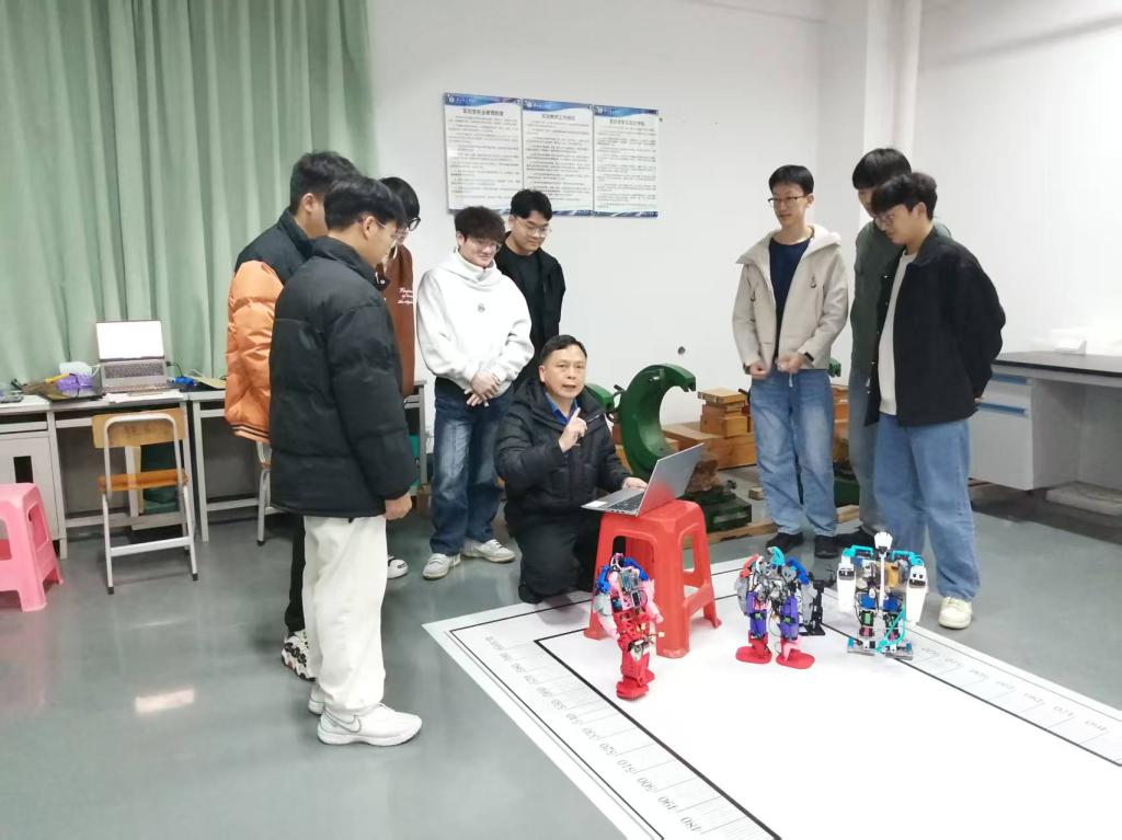 1.工作室团队成员有22-23级机械设计制造及自动化、机器人工程等专业学生,分为外观设计组、结构设计组、控制开发组、加工装配组,共有10多名学生参与项目开发,目前主要是开发工业机器人及系统应用开发,申报机器人相关的发明专利或者实用新型专利,同时参赛ROBOTWORK全国工程机器人大赛、中国机器人及人工智能大赛、广东省工科实验综合技能大赛等赛事。