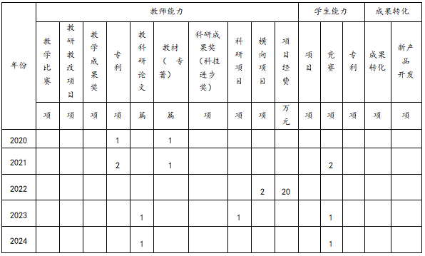 2020-2024年工作室建设成效统计表如下表: